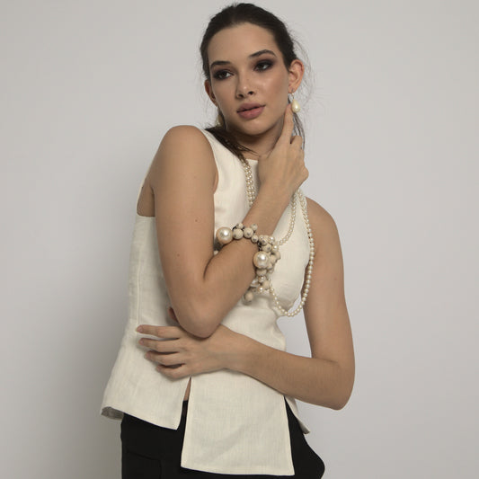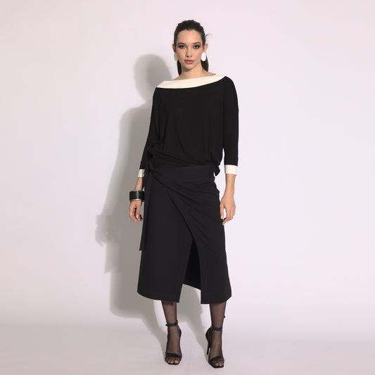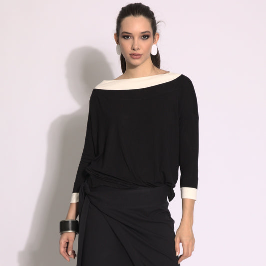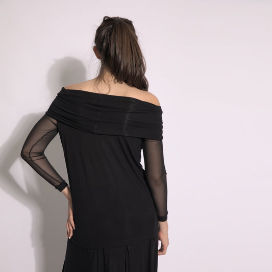 Isabella - Blouse with off-the-shoulder neckline and black tulle sleeves